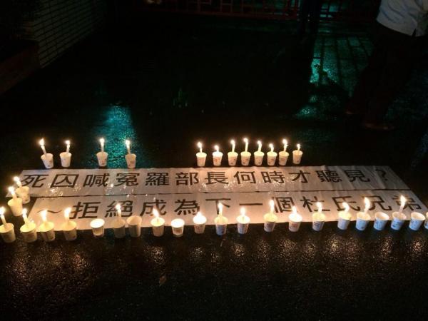 今(6)日適逢杜氏兄弟頭七,晚間廢除死刑推動聯盟、國際特赦組織AI台南小組、冤獄平反協會、台灣人權促進會、民間司法改革基金會、人本教育基金會、成大零貳社等社團及聲援群眾,在台南看守所前為杜氏兄弟點燃燭光、繫上黃絲帶,不放棄為杜氏兄弟平冤的希望。